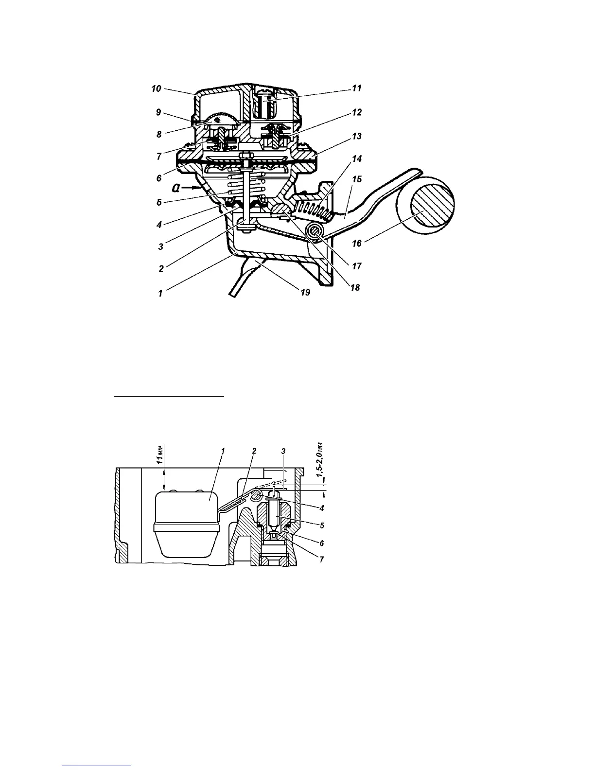 1 - casing; 2 - pull rod; 3 - seal; 4 - washer; 5, 14 -springs; 6 - diaphragm; 7 -