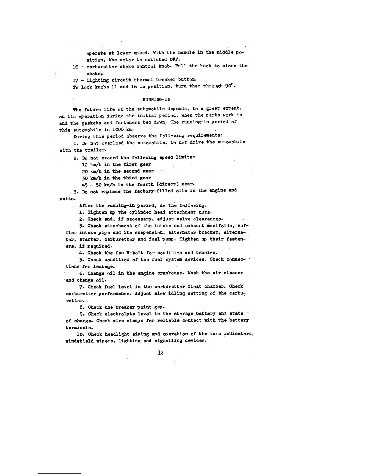 UAZ 469B - Running-In and Initial Maintenance; Running-In Importance and Restrictions; Post-Running-In Checks; Tighten Cylinder Head Nuts