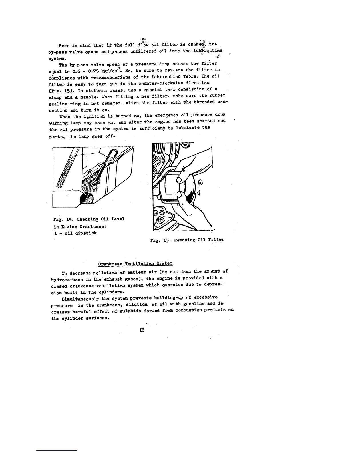 UAZ 469B - Crankcase Ventilation System; Checking Oil Level in Engine Crankcase; Removing Oil Filter
