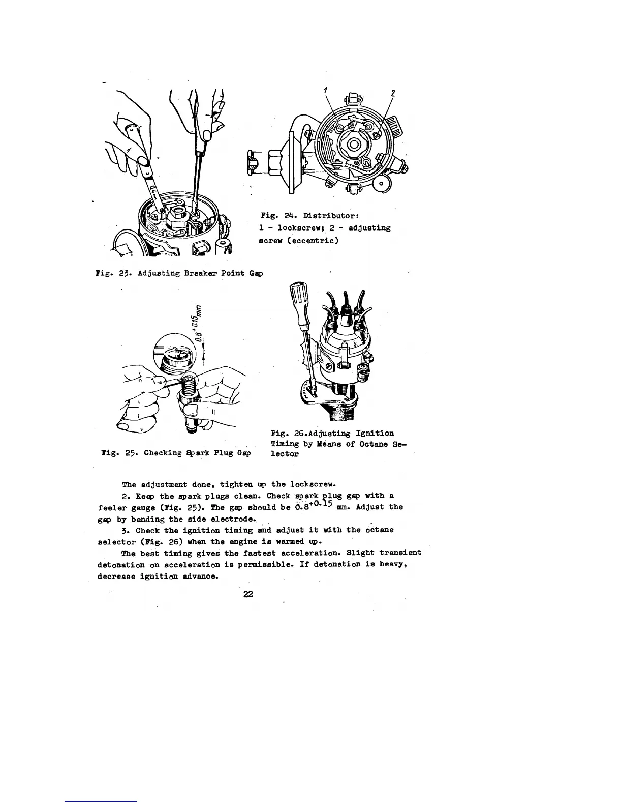 UAZ 469B - Ignition System Maintenance; Distributor and Breaker Point Care; Spark Plug Gap Check and Adjustment; Ignition Timing Adjustment