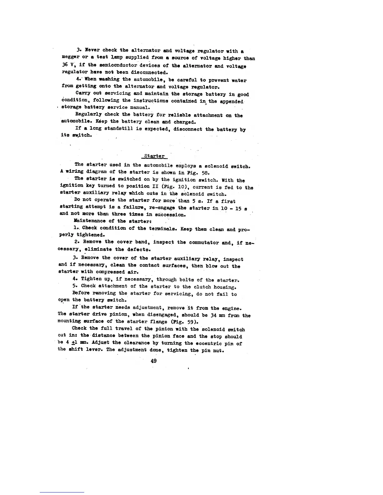 UAZ 469B - Starter Drive Pinion Position and Adjustment