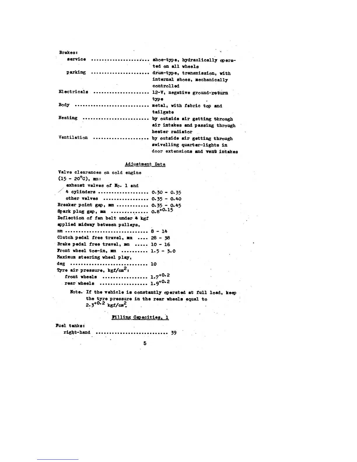 UAZ 469B - Adjustment Data