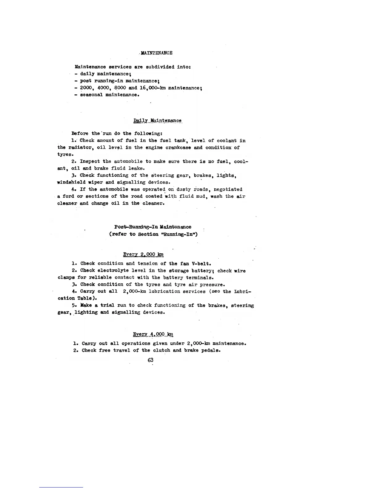 UAZ 469B - Maintenance Schedule; Daily Maintenance Checks