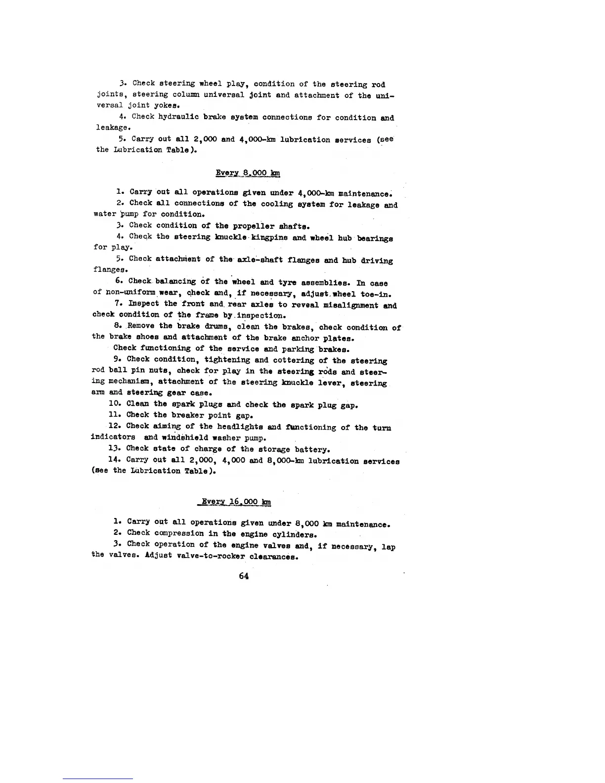 UAZ 469B - Mileage-Based Maintenance Intervals; 2,000 km Maintenance; 4,000 km Maintenance; 8,000 km Maintenance