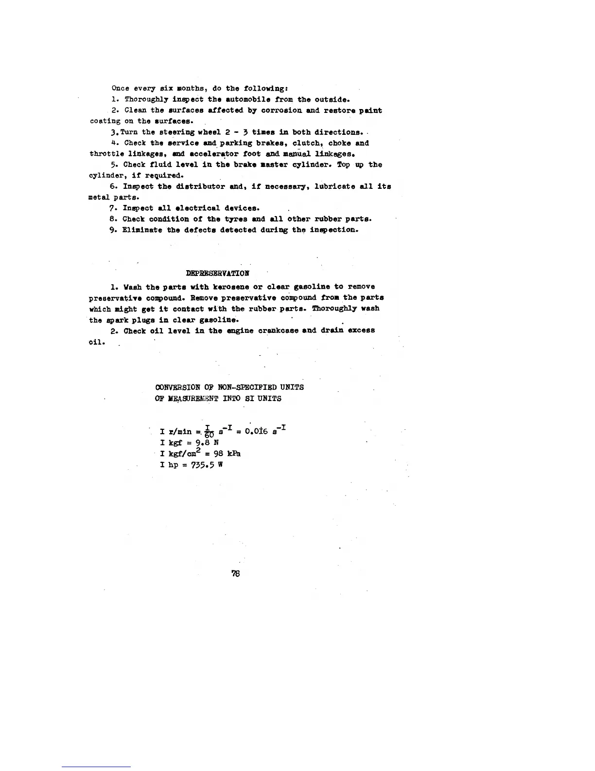 UAZ 469B - Depreservation; Conversion of Non-Specified Units of Measurement into si Units