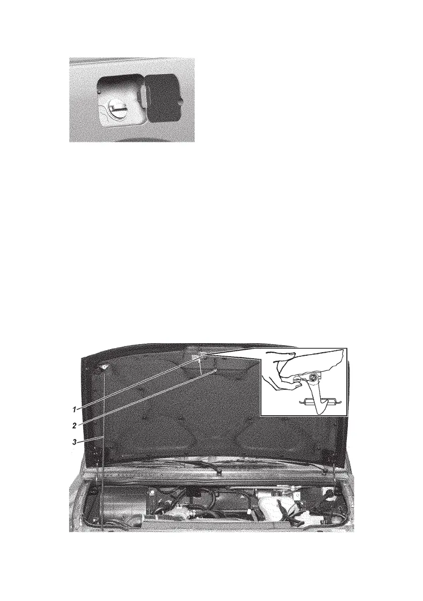 1 (Fig. 3.39) and lift the hood. Take out hood latch 3 from holder