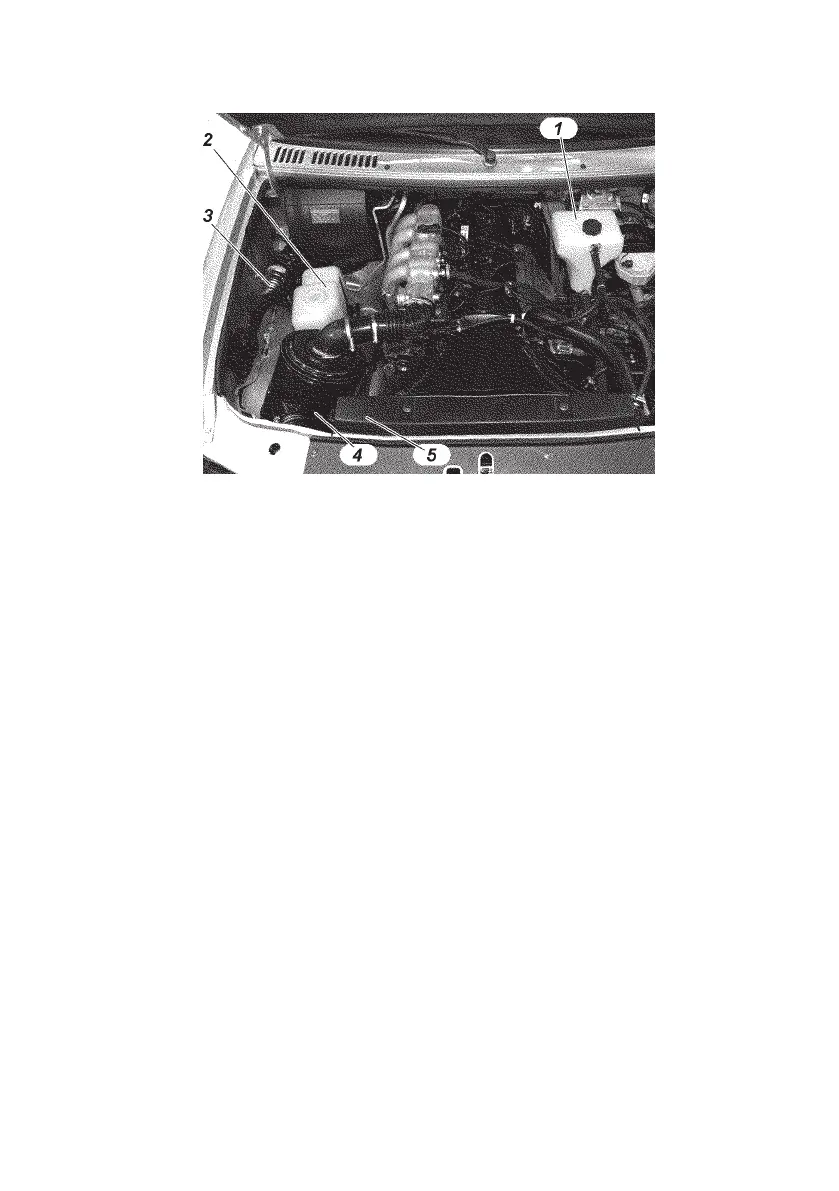 1 — expansion tank of the engine cooling system; 2 — washer reservoir; 3 —
