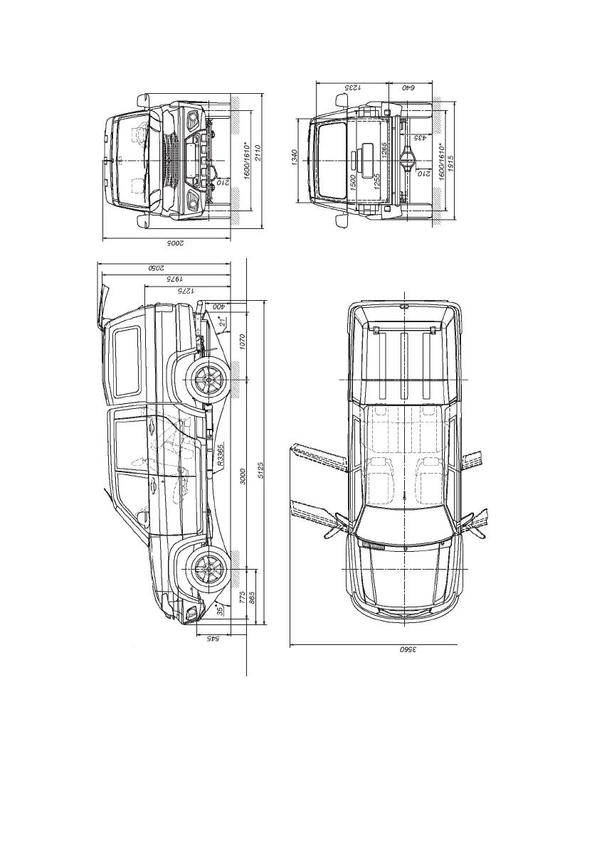 Fig. 1.9. Main dimensions of UAZ PICKUP