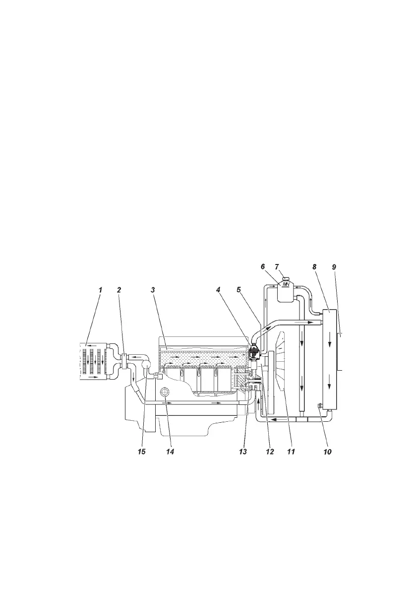 plug; 11 — fan; 12 — fan drive; 13 — pump; 14 — crankcase discharge plug; 15 —