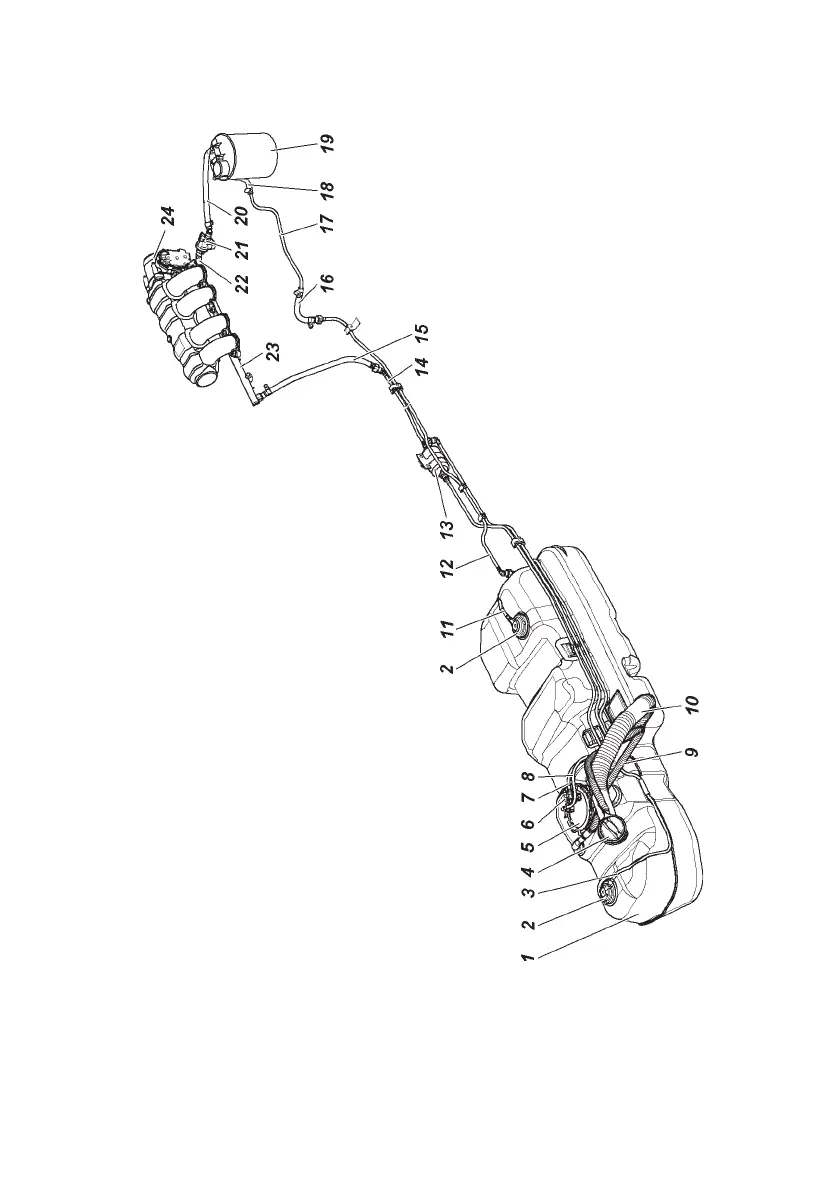 9, 16, 18, 20 — vapor diversion hoses; 10 — fuel tank ll pipe; 13 — ne fuel lter;