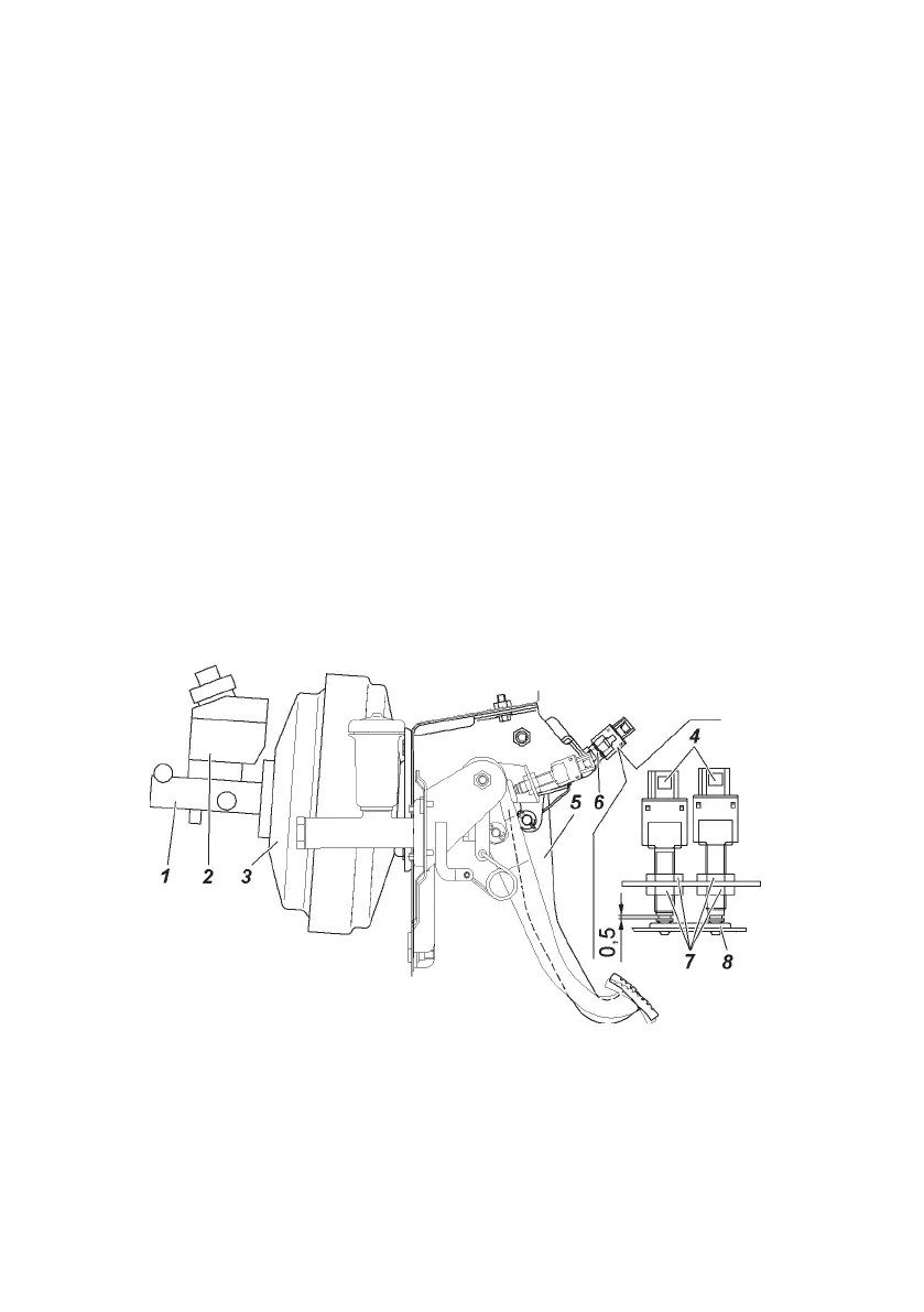 switches; 5 — brake pedal; 6 — adjusting screw; 7 — nuts; 8 — buffer.