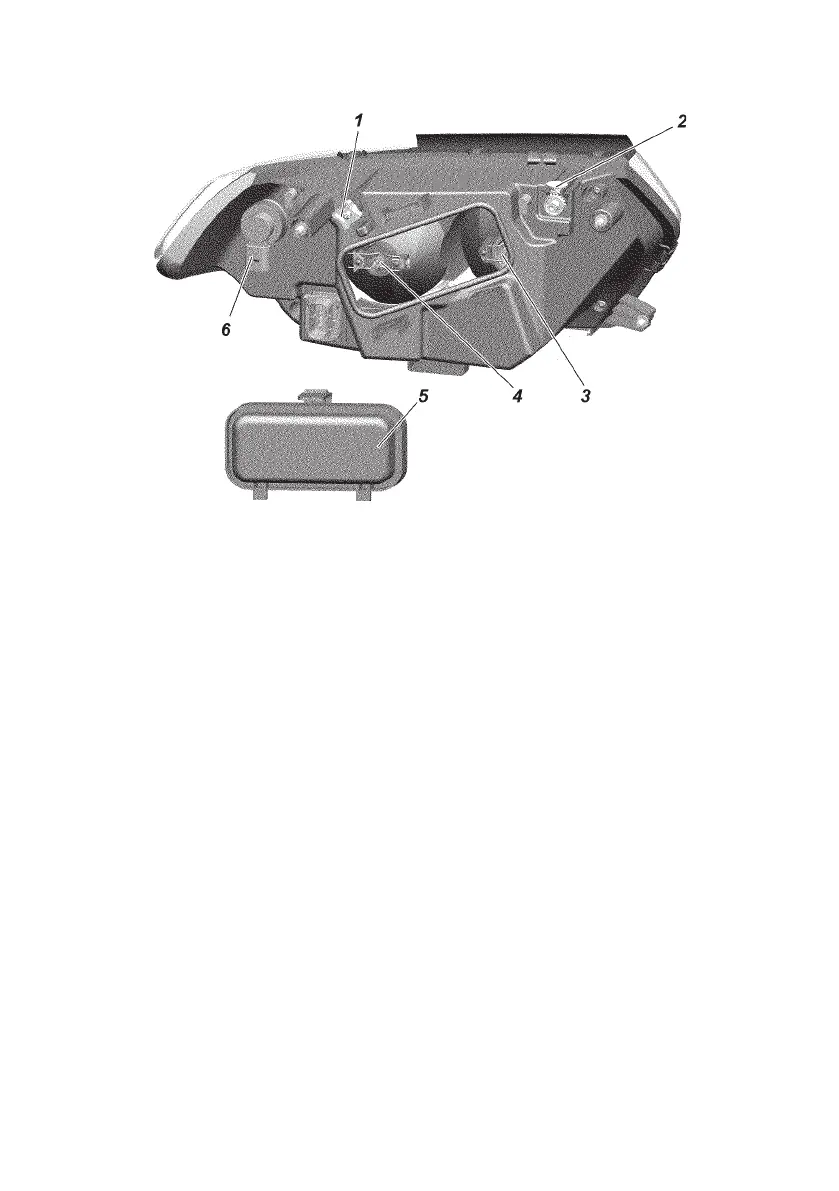 To change the bulbs of high 3 and low 4 beams, remove cap 5.