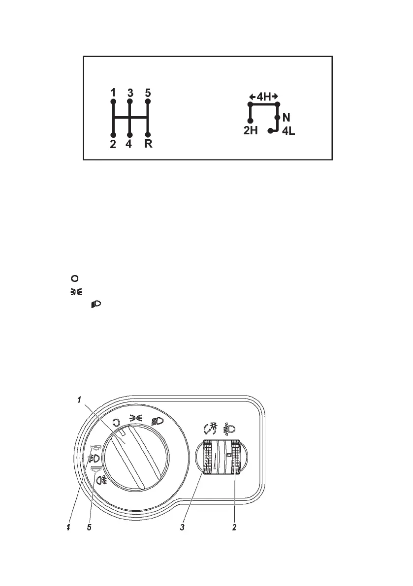 Fig. 3.3. Positions of the gearbox and transfer case levers: