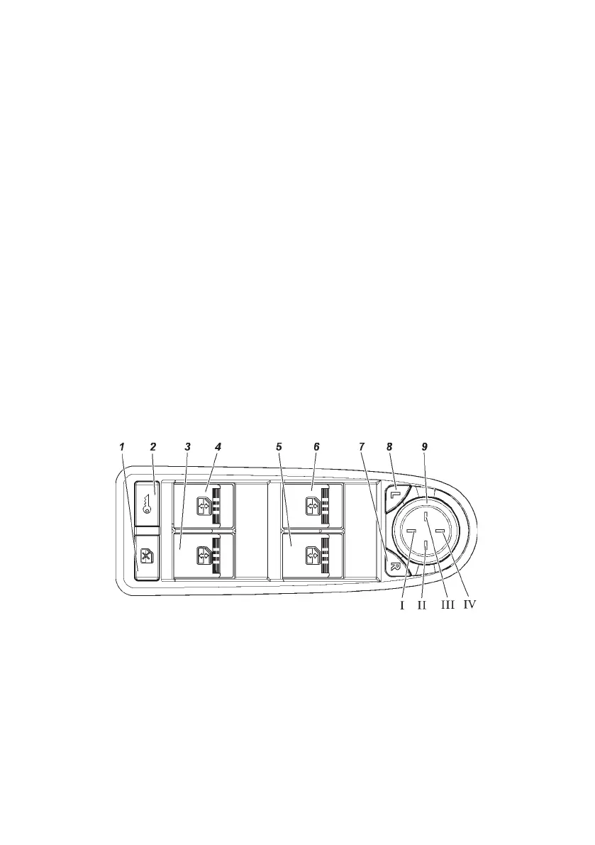 control switch (except for UAZ CARGO): I — mirror down; II — mirror right;
