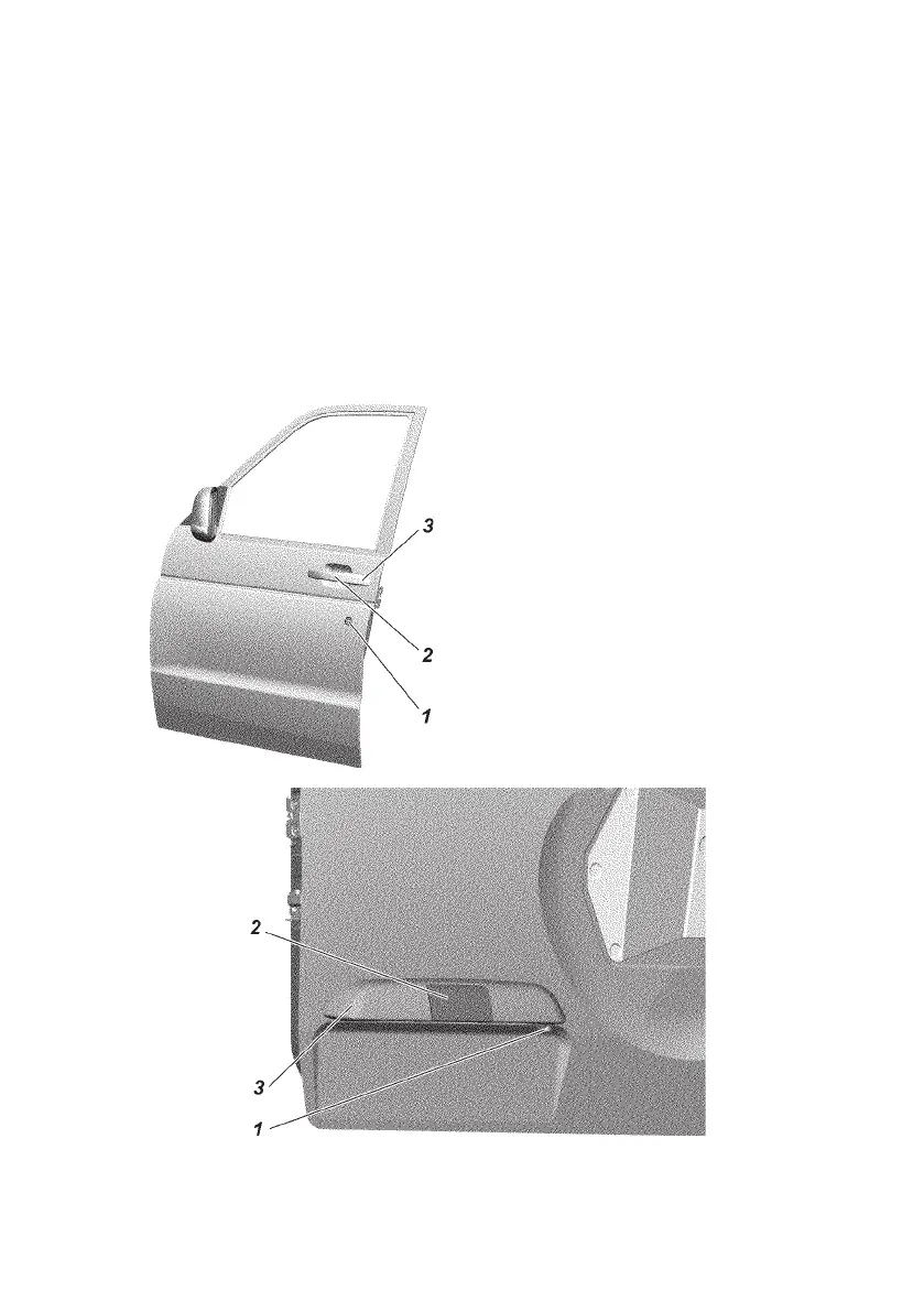 1+ — rear view camera; 2 — door handle; 3 — number plate lighting lamps lining case