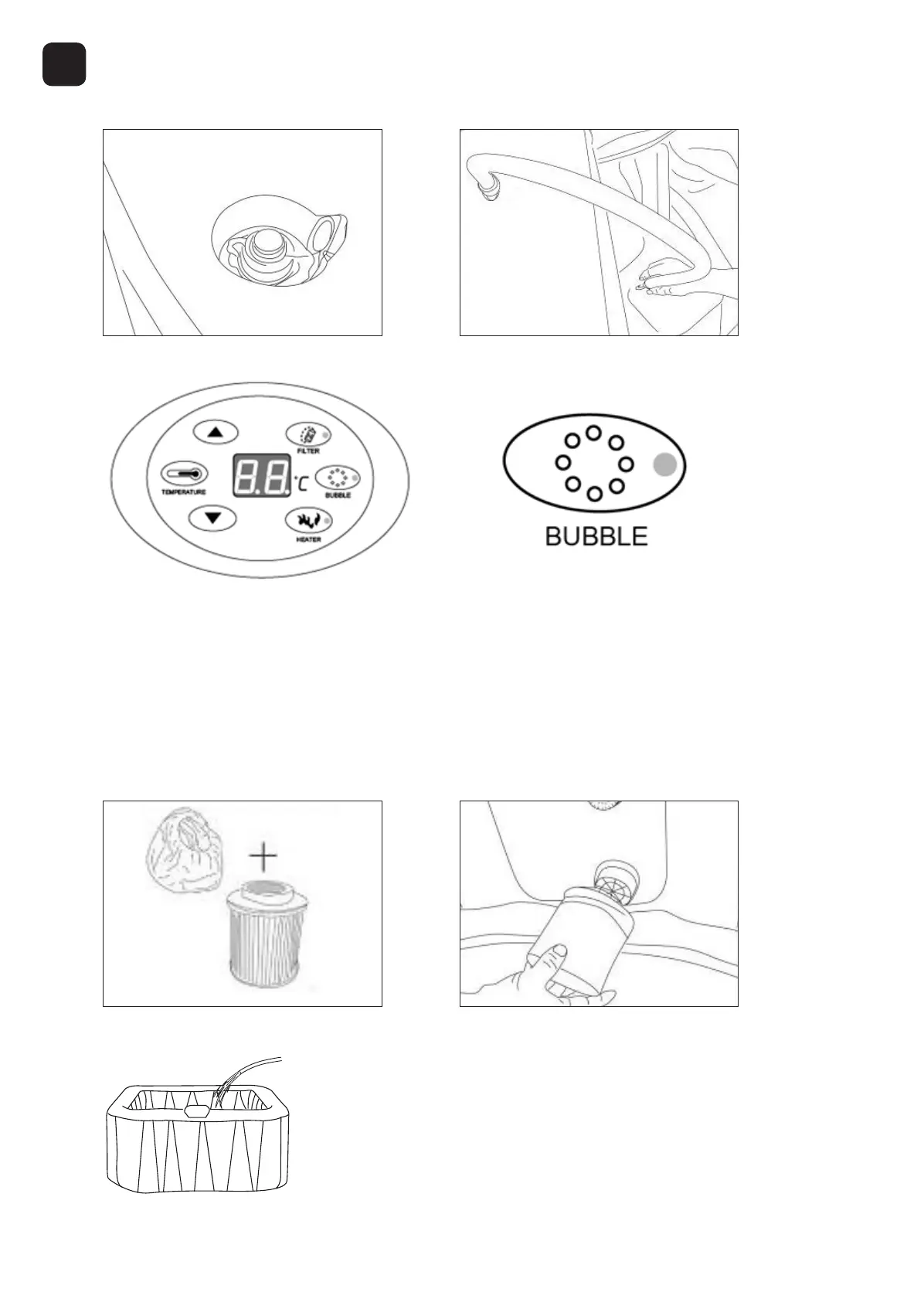 5. Pumpen Sie nun den Whirlpool auf, indem Sie auf der Bedienungskonsole die Taste „BUBBLE“ drücken.