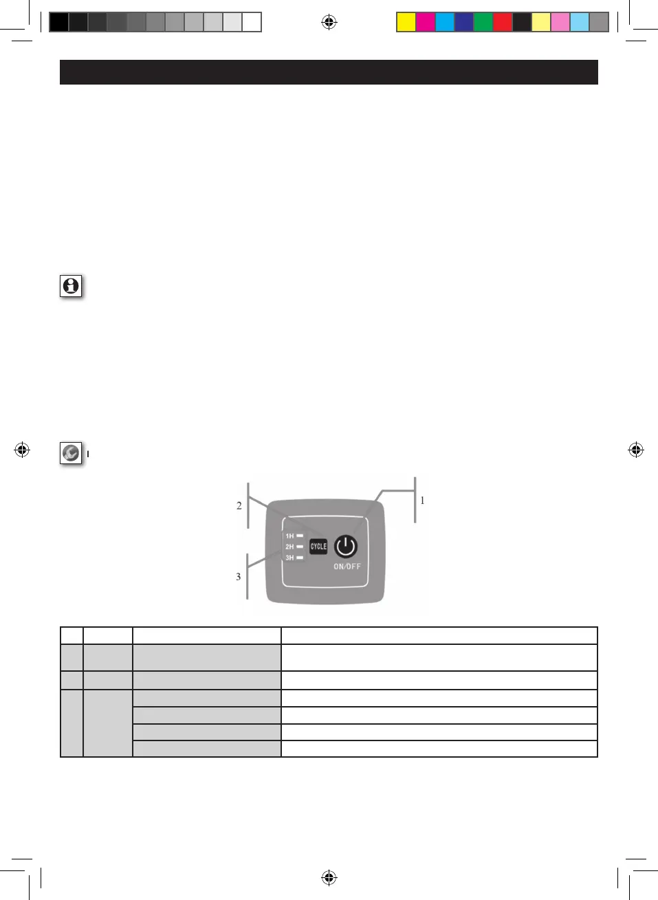 Druk driemaal op de CYCLE-toets (3H knippert) Werktijd van 3 uur