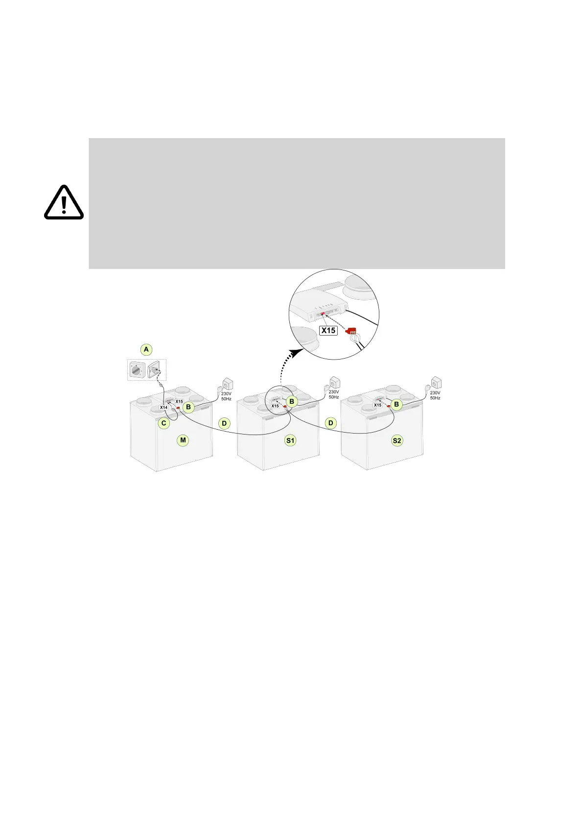 S1 / S2 = Slave appliances (For example a Ubiflux Vigor appliance type 4-0); connect max. of 10 appliances via external Bus
