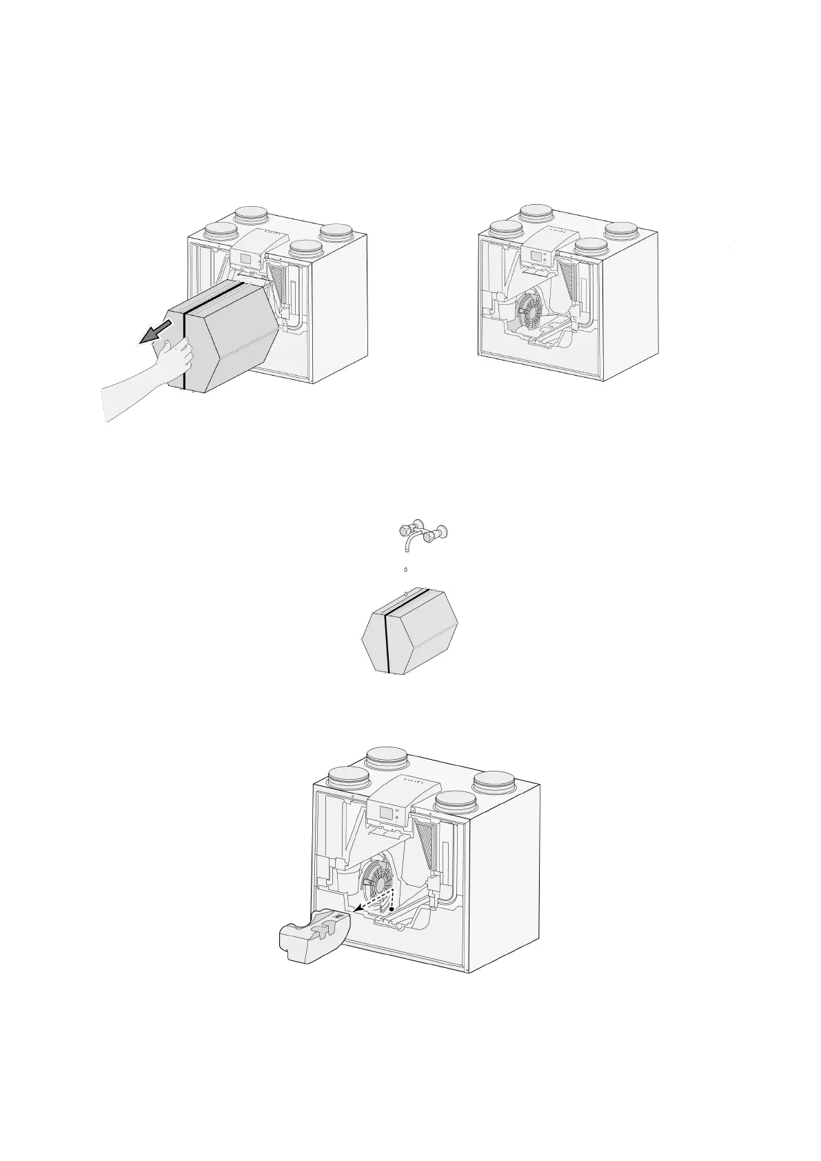 4 Remove the heat exchanger. Be careful not to damage the foam parts in the appliance.