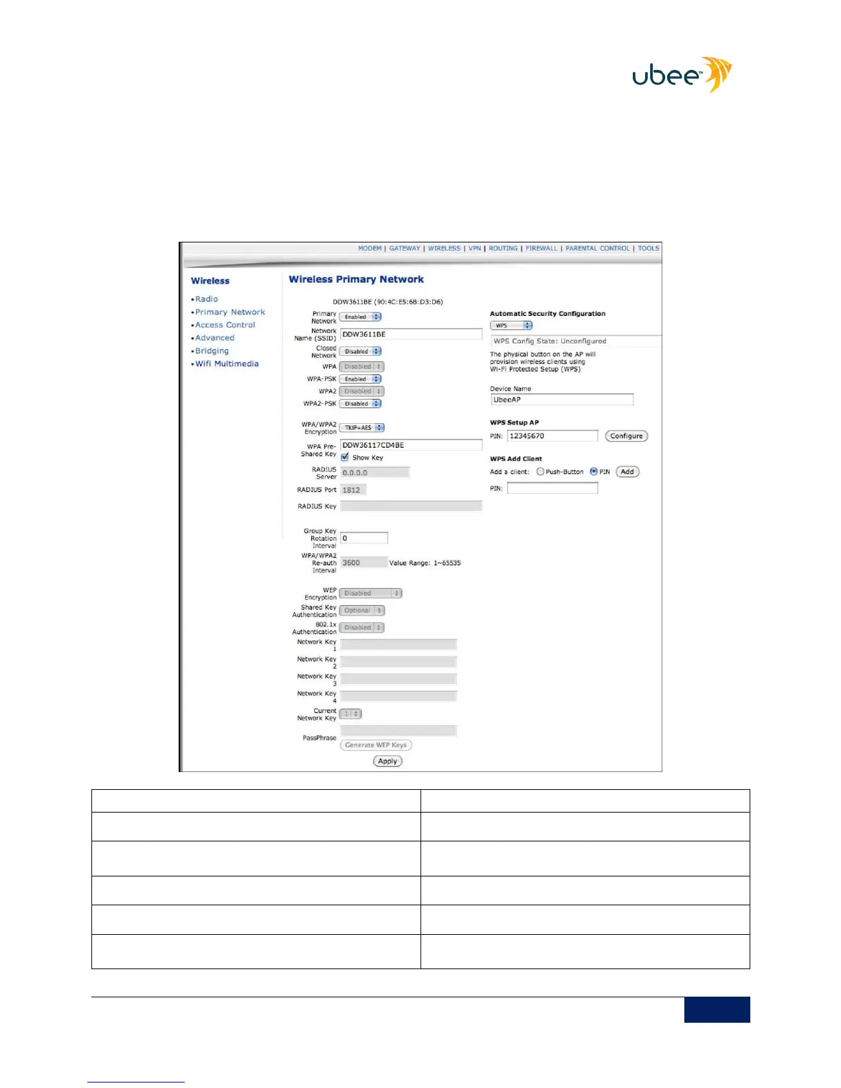 WPA, WPA2, RADIUS, RADIUS Port, RADIUS Key