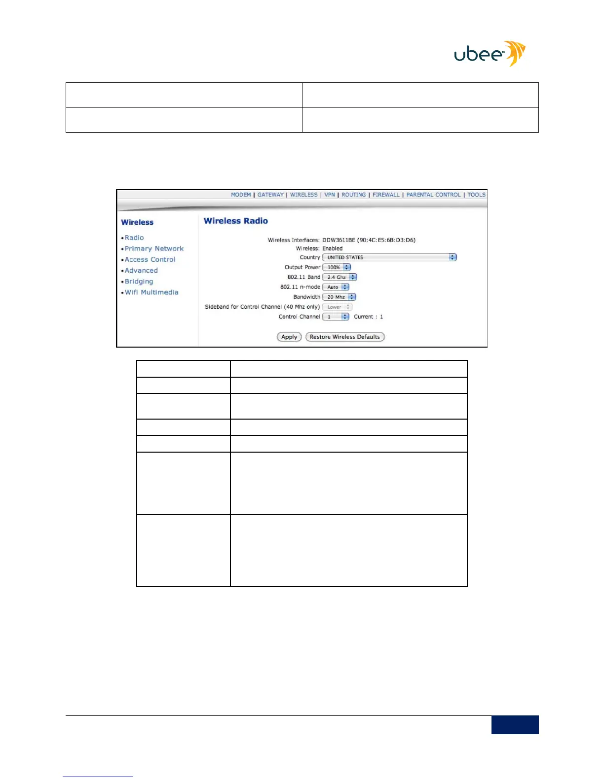 Displays the Wireless name / MAC address.
