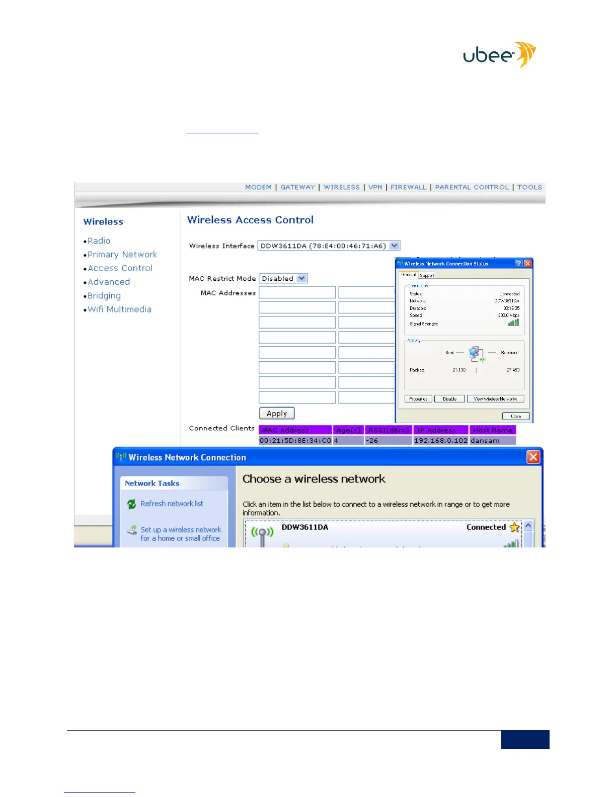 Use the WIRELESS Access Control menu to view RSSI information for a client. From your wireless PC or