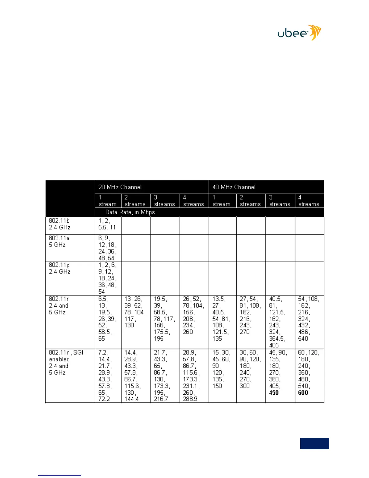 spatial stream). See below the table below, last row 20Mbps channel width with SGI enabled, 1 stream vs 2