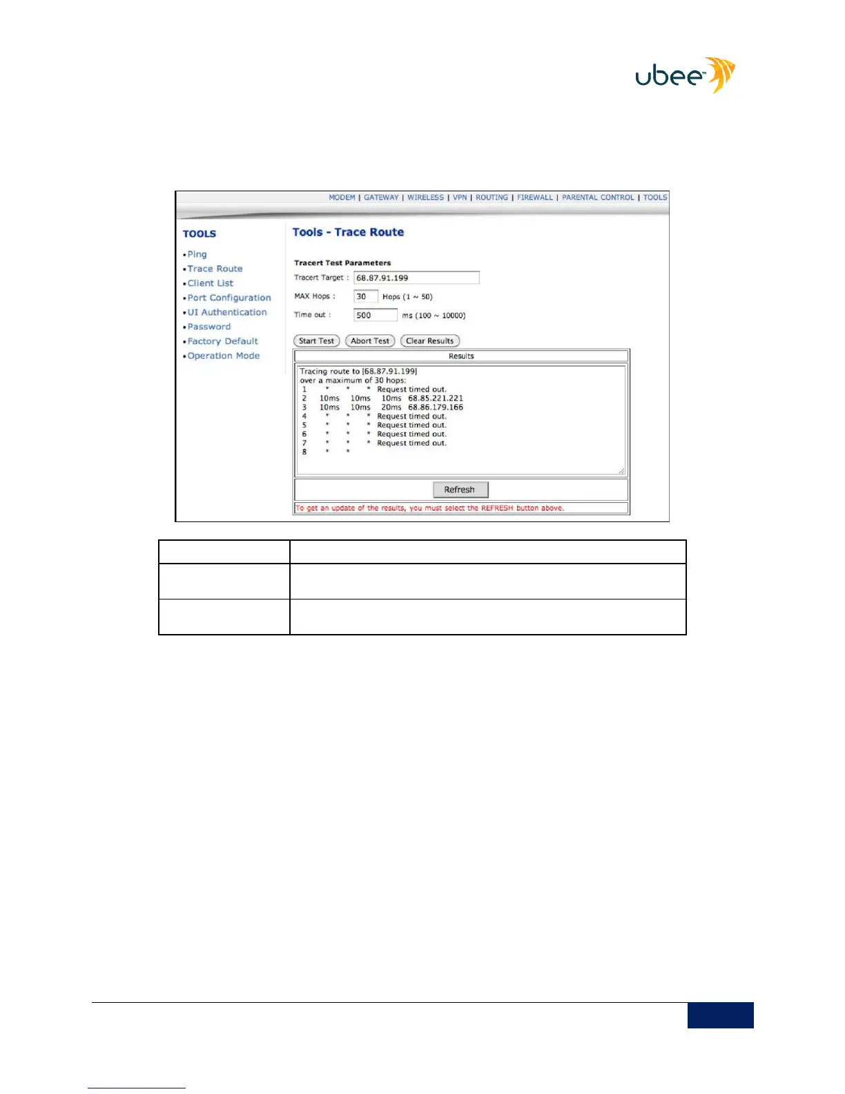 The Trace Route utility traces the route that data is taking to and from the DDW3611 Gateway.