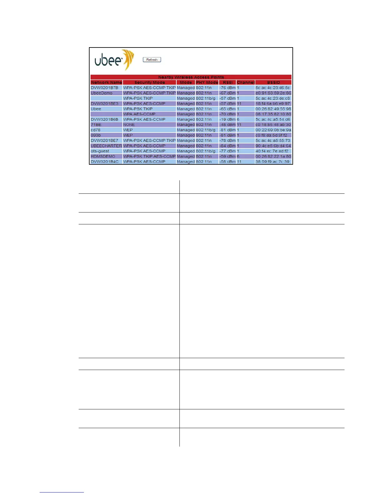 RSSI Displays the received signal strength (RSSI) of the wireless