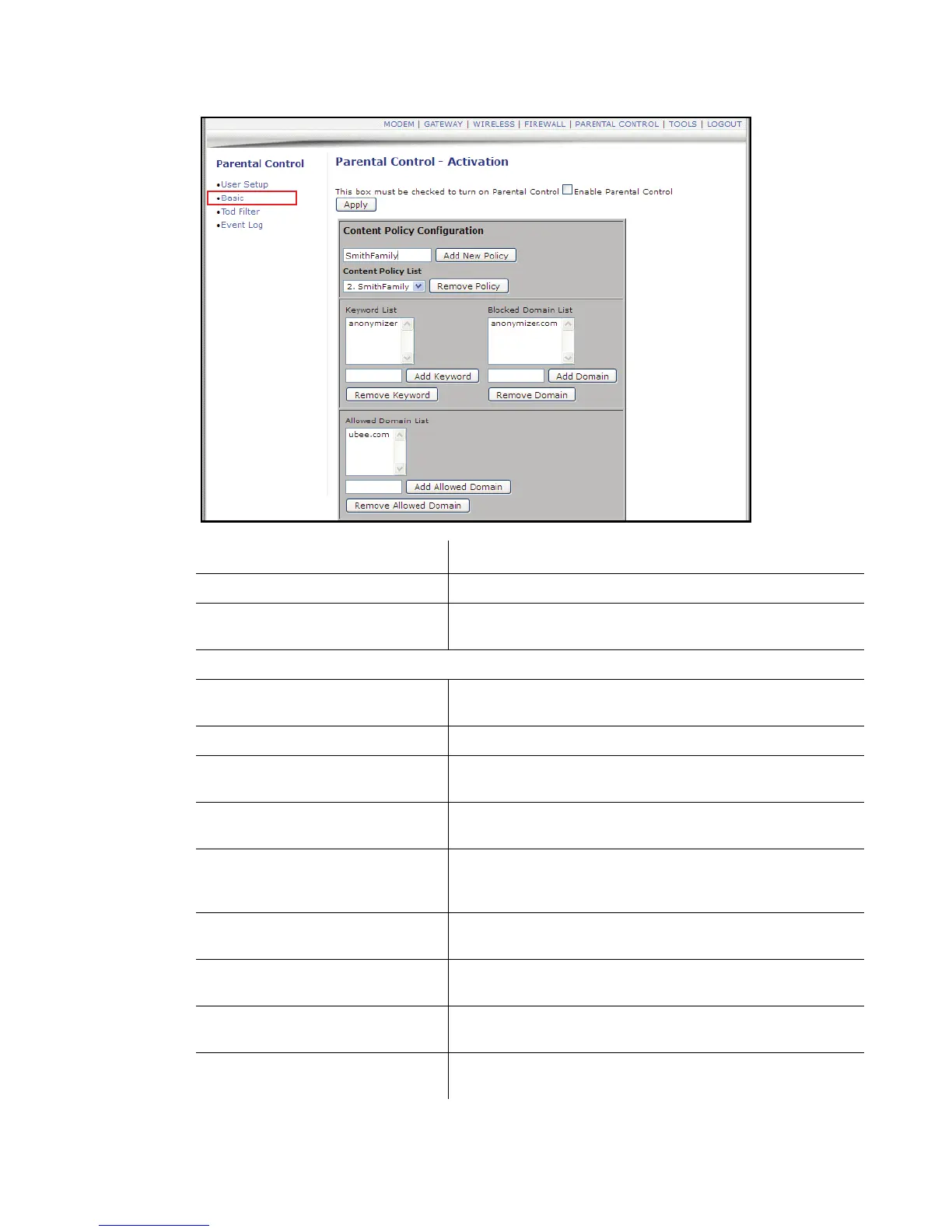 Blocked Domain List Displays Web domains (for example, unwanted.com) you can