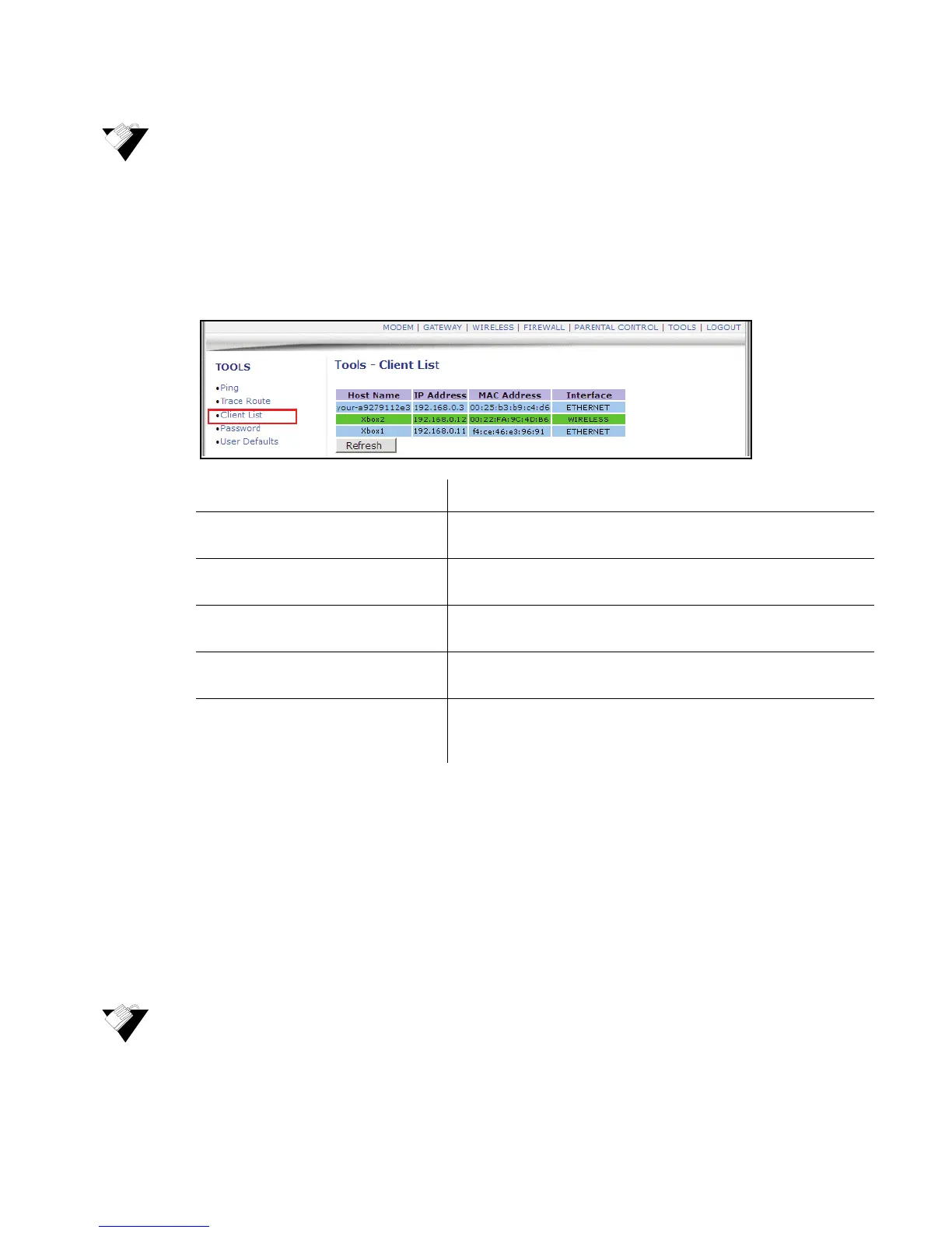 2. Click Client List from the left side menu. Field descriptions are listed below the