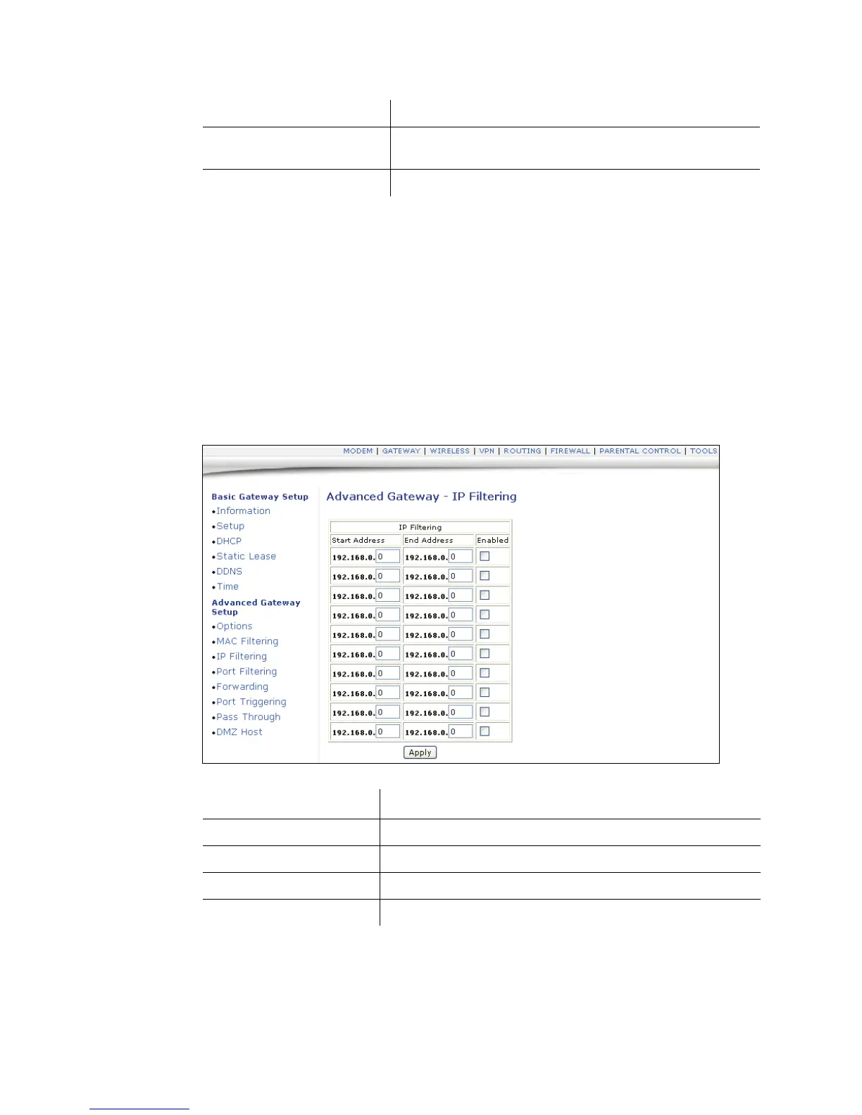 The IP Filtering option allows you to filter IP addresses in order to block internet
