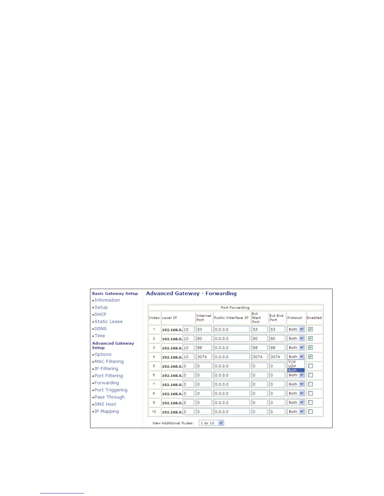 2. Click the Gateway link from the top of the screen. Click Forwarding from the left