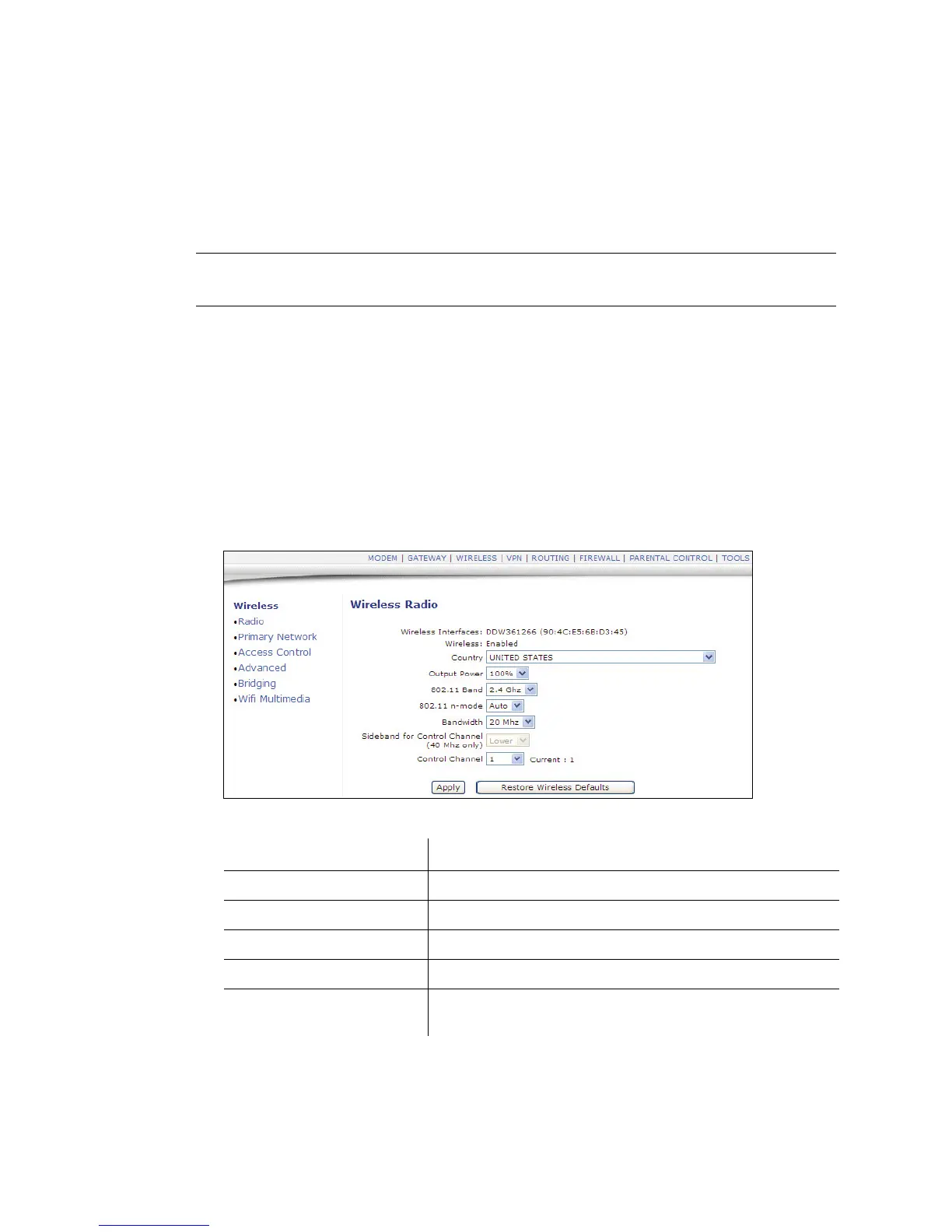 Wireless Displays the wireless radio’s status, Enabled or Disabled.