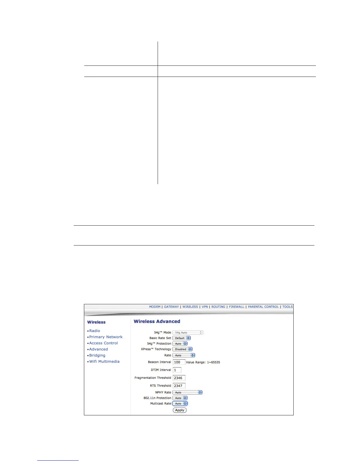 The Advanced option allows you to configure data rates and WiFi thresholds.