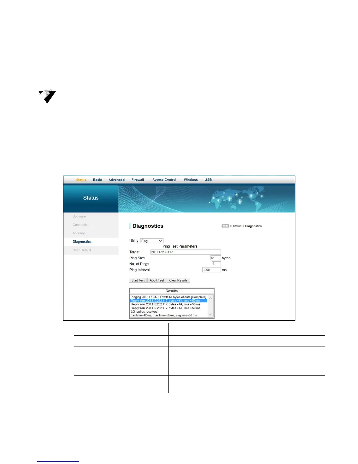 Utility Provides a drop-down menu to choose Ping or Traceroute.
