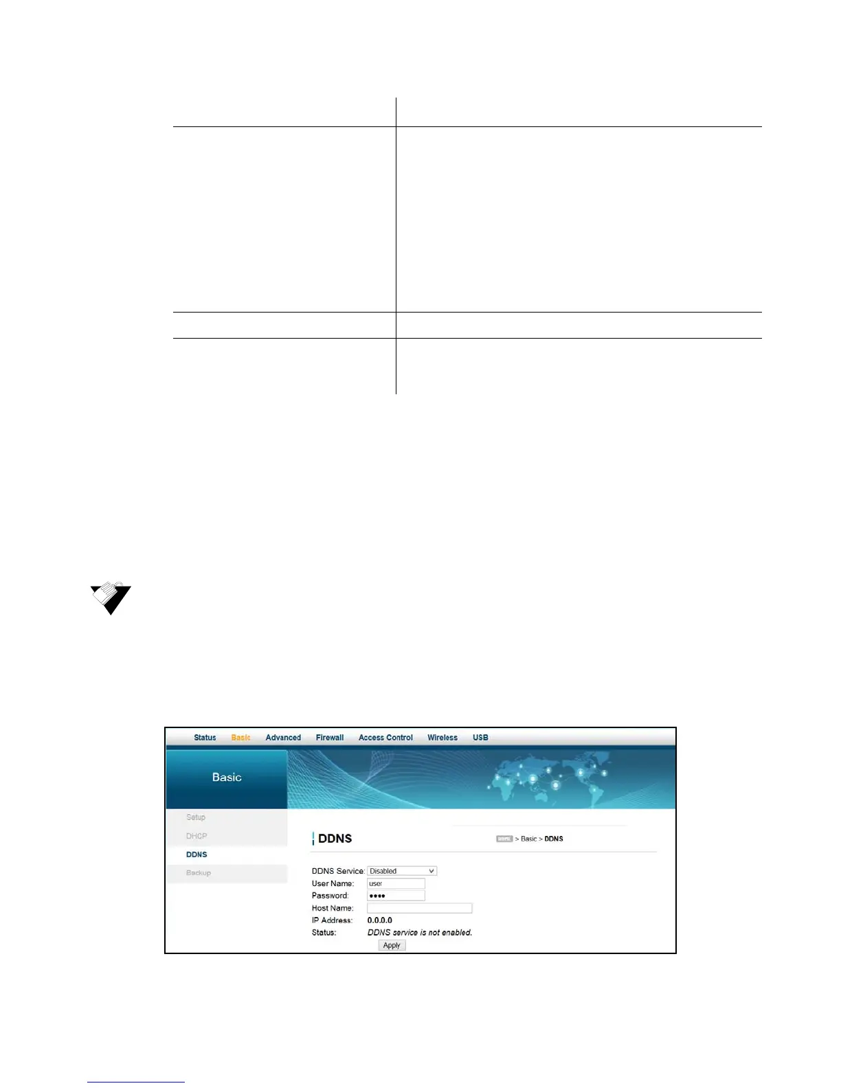 2. Click DDNS from the left side menu. Field descriptions are listed below the screen