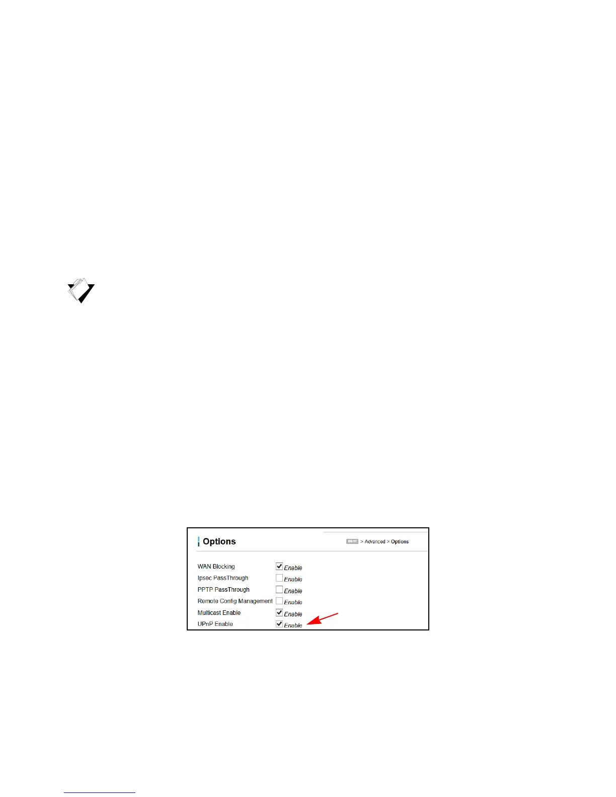 c. The Options screen is displayed. Check the Enable UPnP box.
