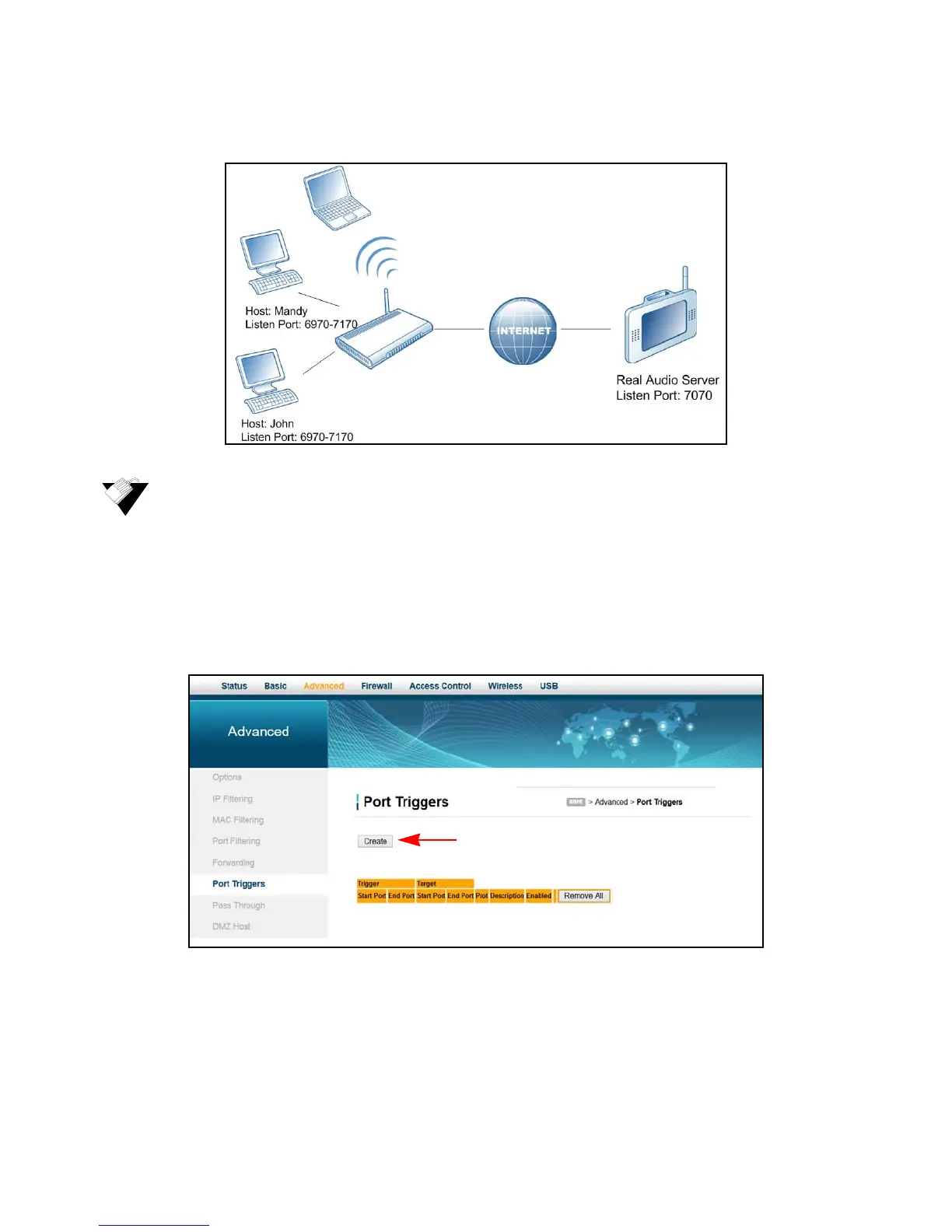 To set up port triggering: