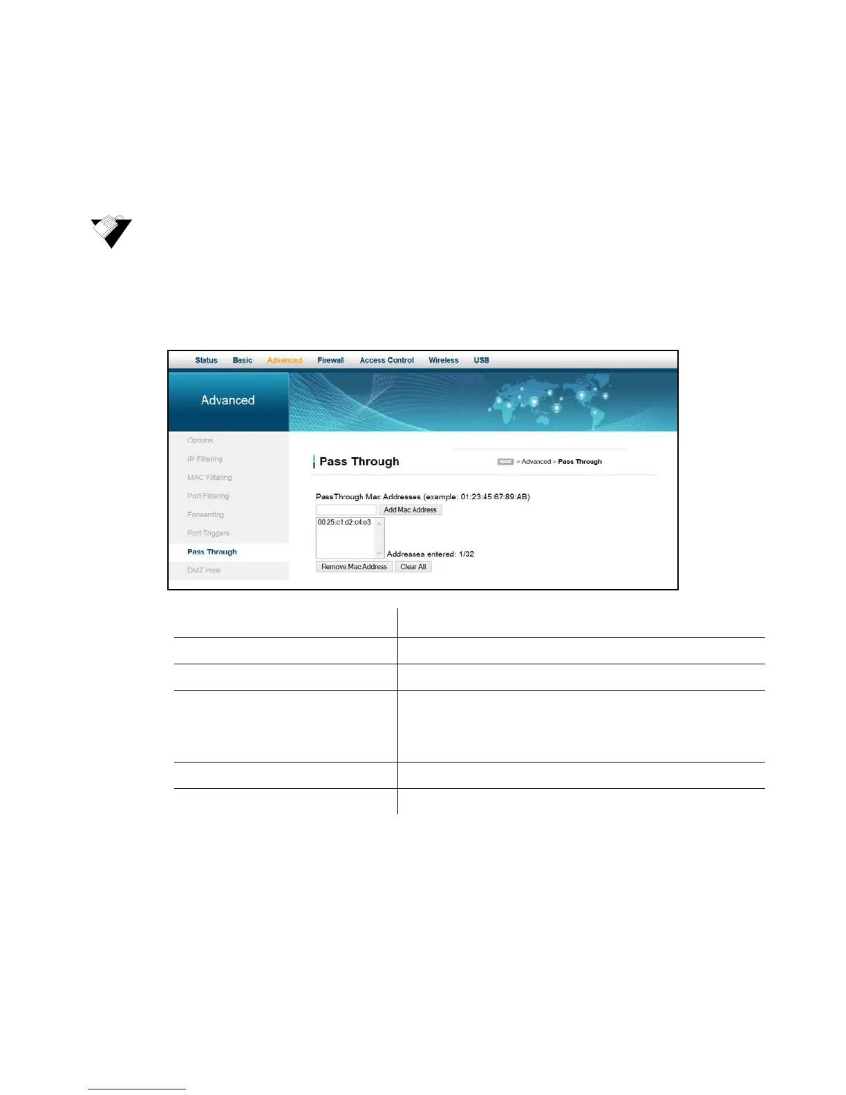 Pass Through MAC Addresses Defines the input host’s MAC address.