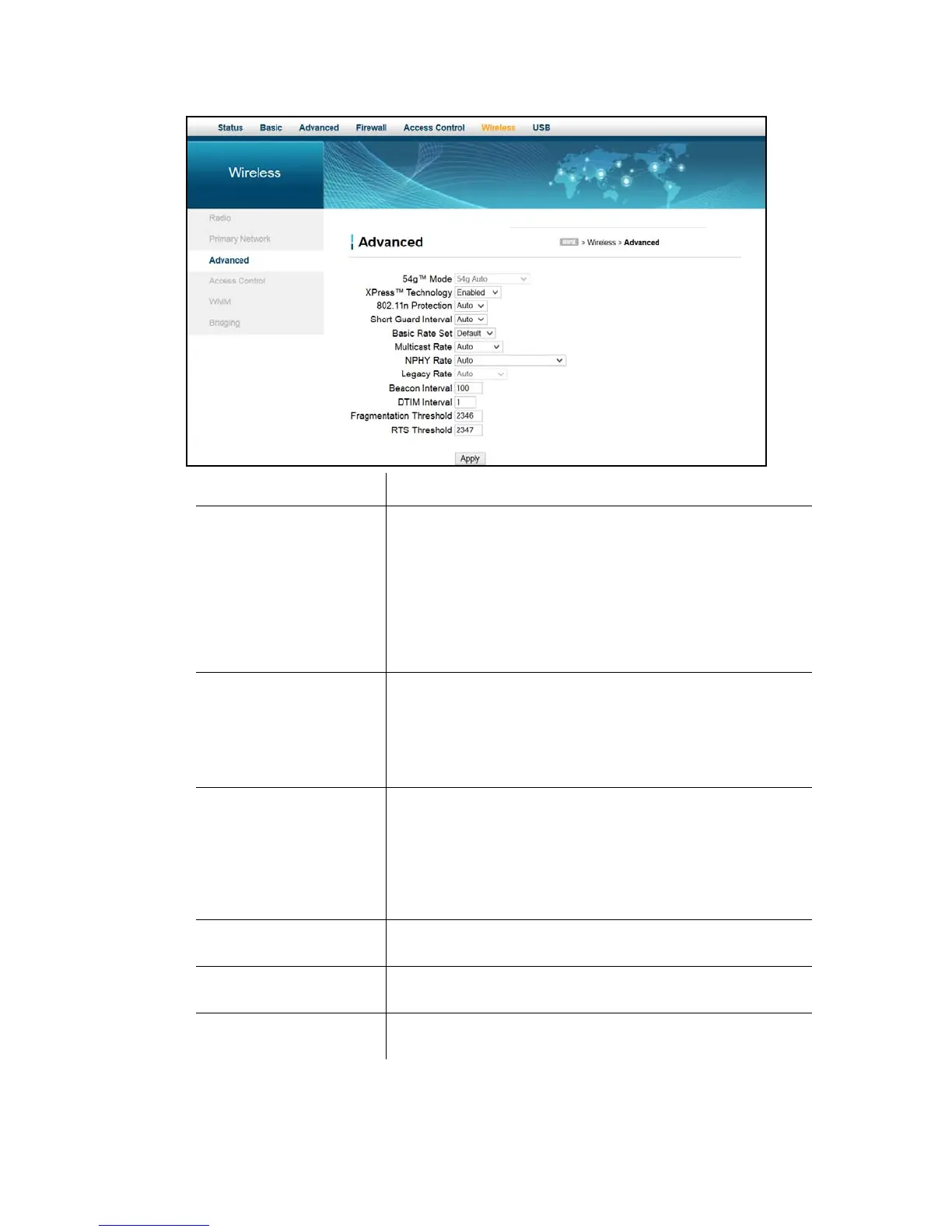 Multicast Rate Specifies the rate at which multicast packets are transmitted and