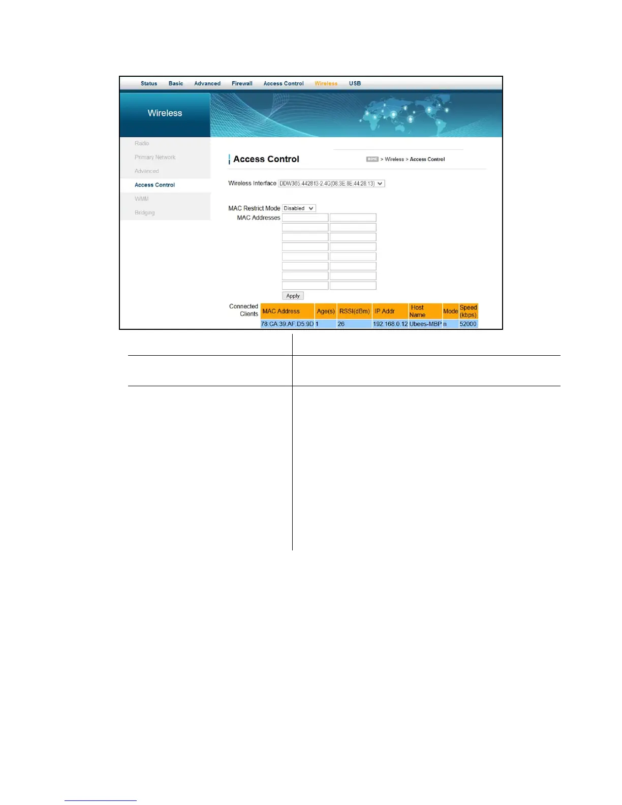 MAC Restrict Mode Controls wireless access to your network by MAC address.