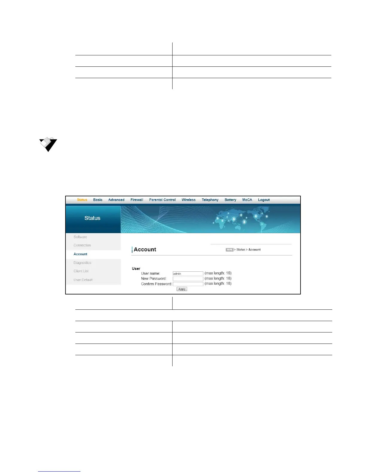 1. Click Status from the main menu.