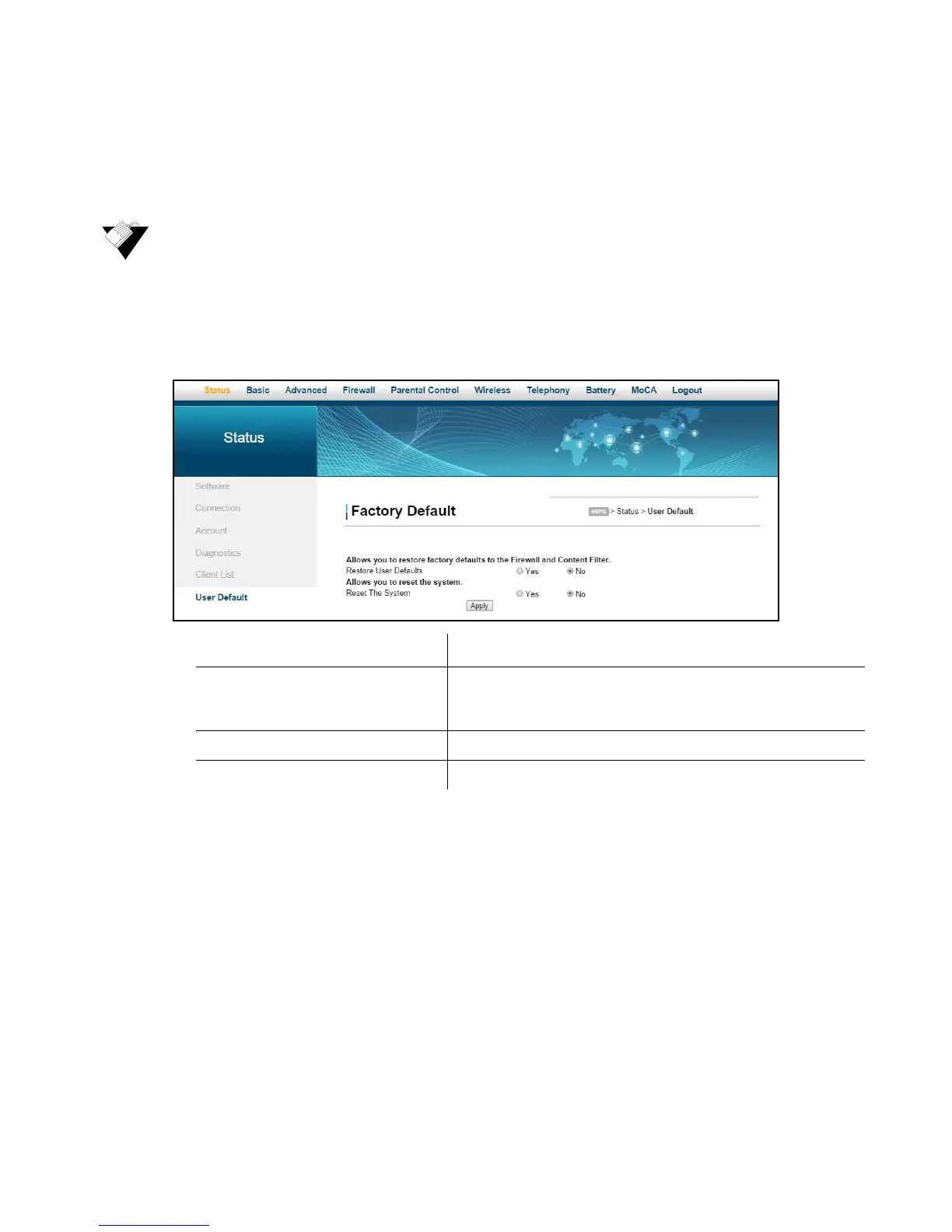 device to default settings for the firewall and content filter
