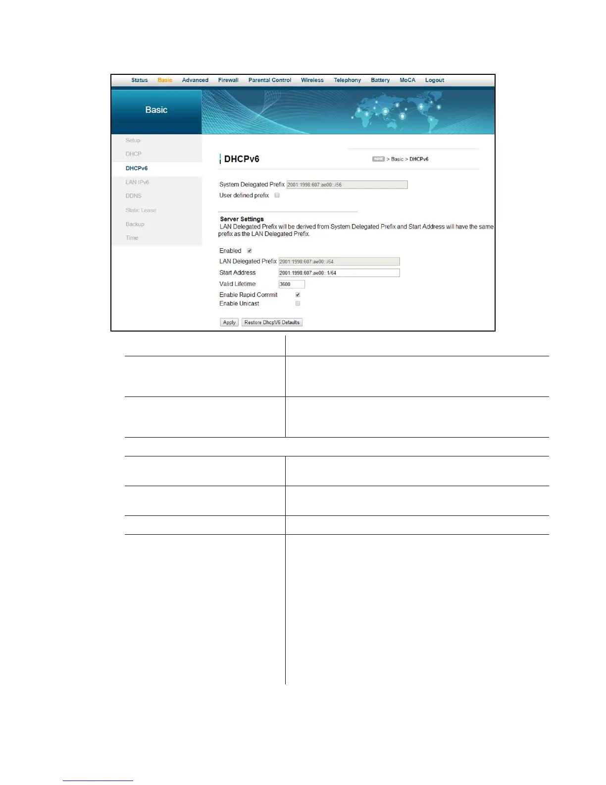 System Delegated Prefix This is the IPv6 prefix from the Setup Web UI, disabled