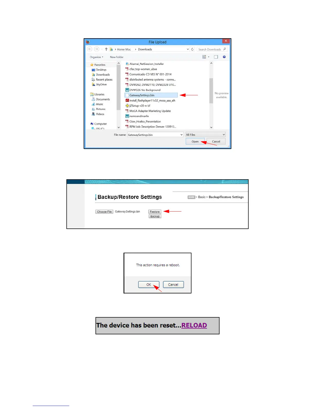 You are then notified that the device has been reset. Click ‘RELOAD’.