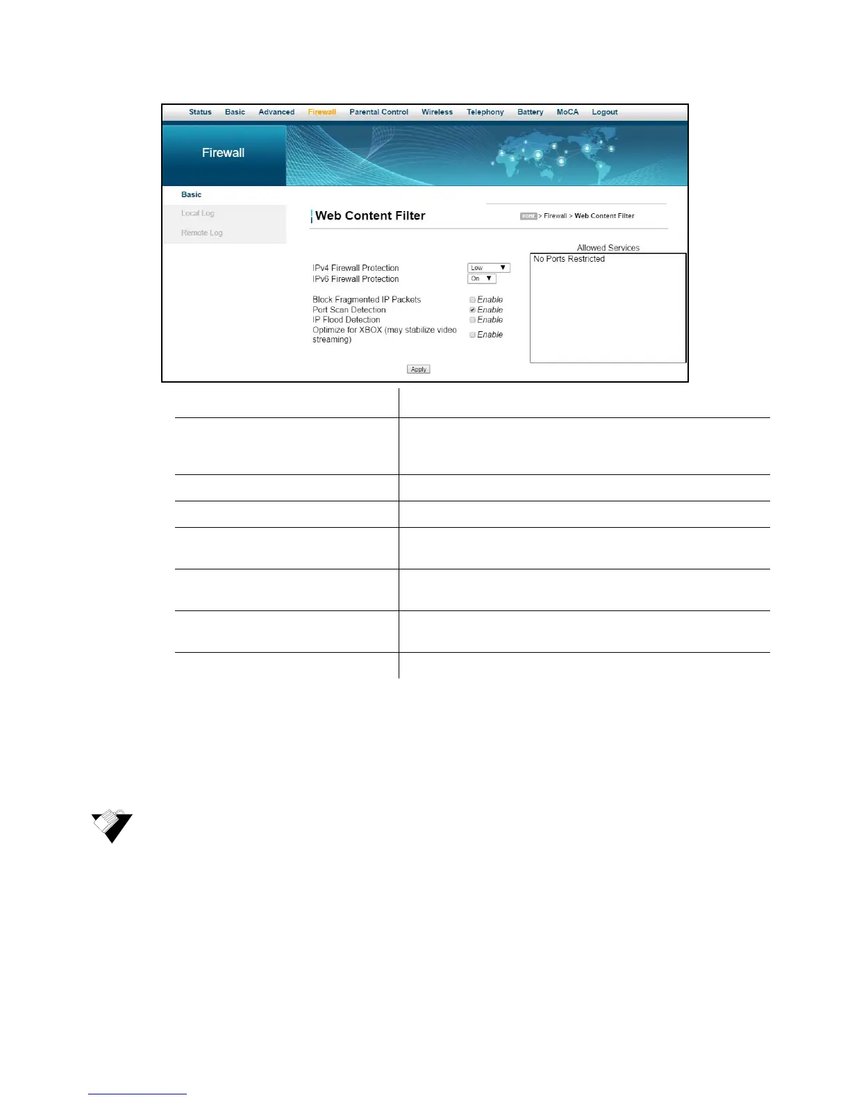 IPv6 Firewall Protection Defines whether IPv6 firewall protection is On or Off.
