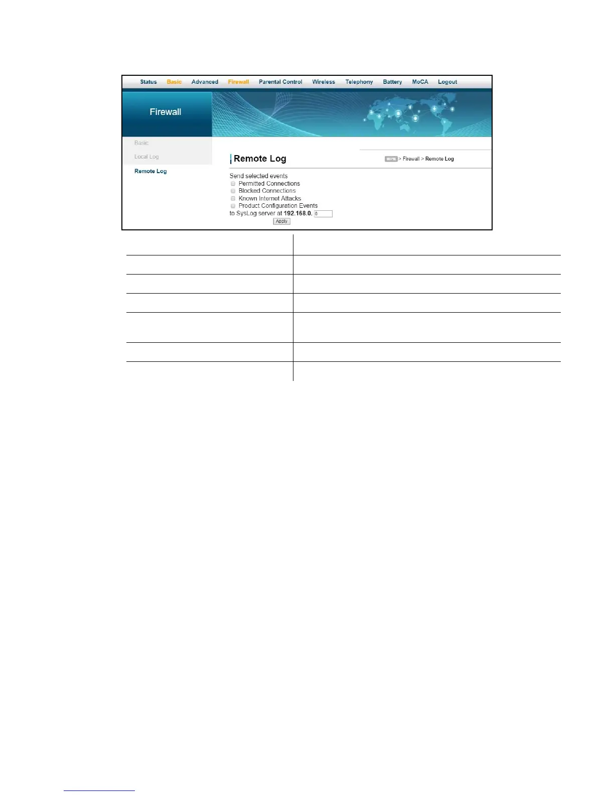 to SysLog server at 192.168.0. Defines the IP address of the Syslog server.