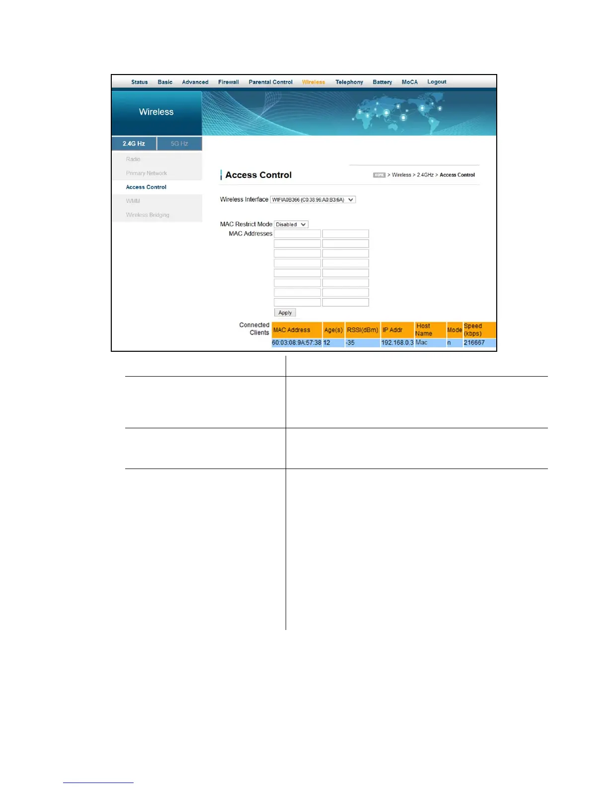 MAC Restrict Mode Controls wireless access to your network by MAC address.