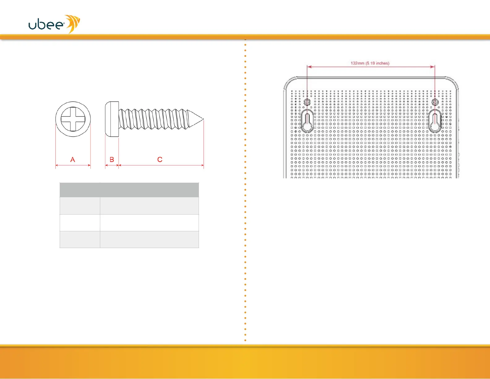 1. Install the 2 screws horizontally on the wall 132 mm (5.19